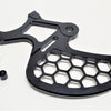 • Rear spacer catch is slot cut to allow for easier rear wheel removal.